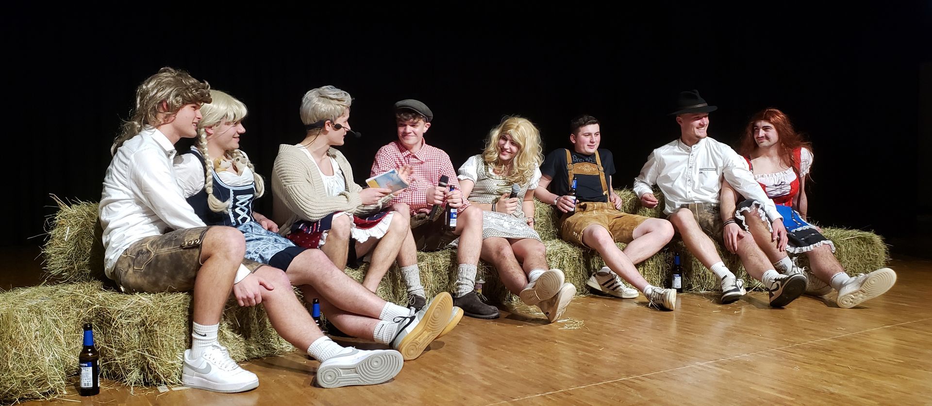 In der Oberwolfacher Festhalle feierten am vergangenen Samstag zahlreiche Narren ausgelassen beim Sportlerball des SVO. Showprogramm, Barbetrieb und abwechslungsreiche Musik sorgten für einen kurzweiligen Abend. Das Programm begann mit der Donnerstags-Turneriege um Regina Rauber, den sogenannten "Sporty Chicks", die das bunte Treiben in ihrer eigenen Whatsapp-Gruppe auf die Schippe nahmen. Es folgte Teil eins der Verkuppelungs-Show "Bauer sucht Frau", zelebriert von den SVO-Youngstern und "Köpflebar"-Mitgliedern um Toni Harter und Lukas Lehmann. Dann gab das Moderatoren-Brüderpaar Lukas und Hannes "Bomber" Springmann die Bühne frei für den zweiten Auftritt der "Sporty Chicks", welche diesmal die Whatsapp-Gruppe der Bambini-Kicker auf's Korn nahmen. Für die immer wieder eingestreuten Videoclips diverser Klassiker von Tele-Grasle übernahm Peter "Puder" Grabsch jeweils die Anmoderation. Einige dieser alten Kurzfilme haben mittlerweile absoluten Kultstatus! Nach einem amüsanten Synchronschwimmerinnen-Auftritt der Fußball-Damen des SVO wussten Patrick Santos, Daniel Schmid und Daniel "Schmiedrich" Schmieder mit einer raffinierten Nummer zu überzeugen, bei der missverständliche Teile von Liedtexten für viele Lacher sorgten. Auf den zweiten Teil von "Bauer sucht Frau" folgten Markus Schuler und Thomas Wild, die bei ihren Nachrichten-Meldungen in "Kentucky schreit f..."-Manier auf humorige Art und Weise viele "Wechsstaben verbuchselten". Die "Alten Herren" des SVO läuteten dann mit ihren "alten Glocken" (O-Ton der Ansager) die Melodien dreier Evergreens, unter anderem "SVO wir lieben dich" (in Anlehnung an 'Großer Gott wir loben dich'), und ernteten dafür tosenden Applaus. Das Finale von "Bauer sucht Frau" und die "Tele Grasle"-Version des Partyhits "Gangnam Style" aus dem Jahr 2012 mit Mathias "Bummel" Grabsch in der Hauptrolle bildeten den Abschluss eines unterhaltsamen Programms, dessen Mitwirkende sich mit einer großen Polonaise vom Publikum verabschiedeten. Anschließend vergnügten sich die Besucher in der Bar, die sich erstmals im 1. Stockwerk befand, oder in der Halle zu bunt gemischter Party- und Tanzmusik, die - ebenfalls eine Premiere - nicht von einer Liveband kam, sondern von DJ Norman, der die Tanzbegeisterten bis tief in die Nacht fachmännisch beschallte. Bericht / Fotos: Jan Schmider