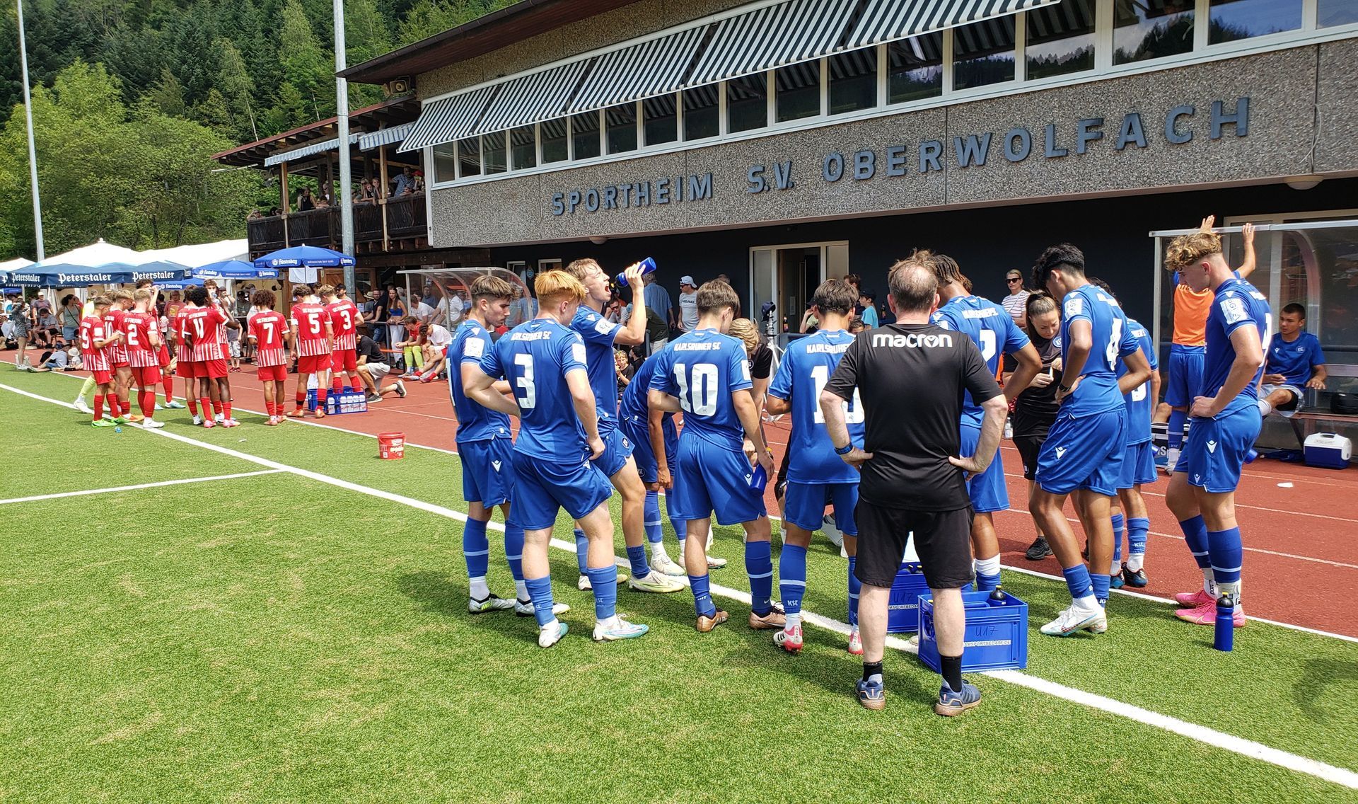 Am Samstag war der SV Oberwolfach Gastgeber eines interessanten Testspiels zwischen den U17-Mannschaften des Bundesligisten SC Freiburg und des Zweitligisten Karlsruher SC. Trotz glühender Hitze tummelten sich zahlreiche Zuschauer auf den Schattenplätzen rund um den Oberwolfacher Kunstrasen. Auf dem Spielfeld neutralisierten sich beide Teams weitestgehend. Technik, Taktik und Engagement der Kicker stimmten, Strafraumszenen waren aber absolute Mangelware. Die aktivere Mannschaft war zwar der von Ex-Profi Martin Stoll trainierte KSC, am Ende hatten jedoch die Freiburger im badischen Duell knapp die Nase vorne. Nach einer Ecke in der 74. Minute erzielte Luis Thoma per Kopf den einzigen Treffer des Tages.