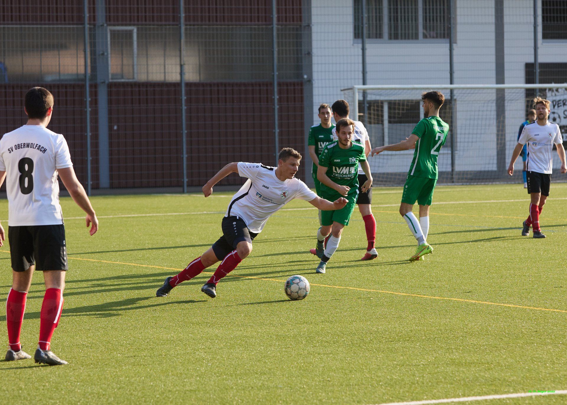 Die Hausherren machten von Beginn an Dampf. Eine Ecke von Leon Weiß köpfte Jonas Dieterle in der 2. Minute haarscharf rechts vorbei. Wenig später steckte Jonas Wolf für Freddy Burger durch, doch DJK-Keeper Erik Brucher blieb Sieger. Beim Kopfball von Pirmin Bonath in der 14. Minute rettete der Gästekeeper aus kurzer Distanz hervorragend. Zwei Minuten später fiel dann aber die überfällige Führung. Erneut bereitete Leon Weiß mustergültig vor und Freddy Burger zimmerte das Leder zum 1:0 in die Maschen. Bereits in der 19. Minute erhöhte die SVO-Reserve. Diesmal kam die gute Vorarbeit von Freddy Burger und Tim Fleing schob zum 2:0 ein. Auf der Gegenseite hatte Welschensteinach in der 32. Minute die große Chance zum Anschlusstreffer, doch Oberwolfachs Schlussmann Oliver Mai fischte den Kopfball von David Maier mit einer tollen Parade aus dem Winkel. Dabei verletzte sich der Torhüter jedoch und musste später raus. Zuvor sah er aber noch, wie seine Vorderleute erhöhten. Jonas Wolf traf nach feiner Einzelleistung mit einem sehenswerten Distanzschuss zum 3:0 in der 38. Minute. Wenig später verfehlte derselbe Spieler per Flachschuss das Tor nur um Haaresbreite und auch Tim Fleing vergab nach Flanke von Marcel Echle. Kurz vor der Pause hätte die DJK verkürzen können, doch der Versuch aus der Distanz von Arian Steiner ging knapp links vorbei.