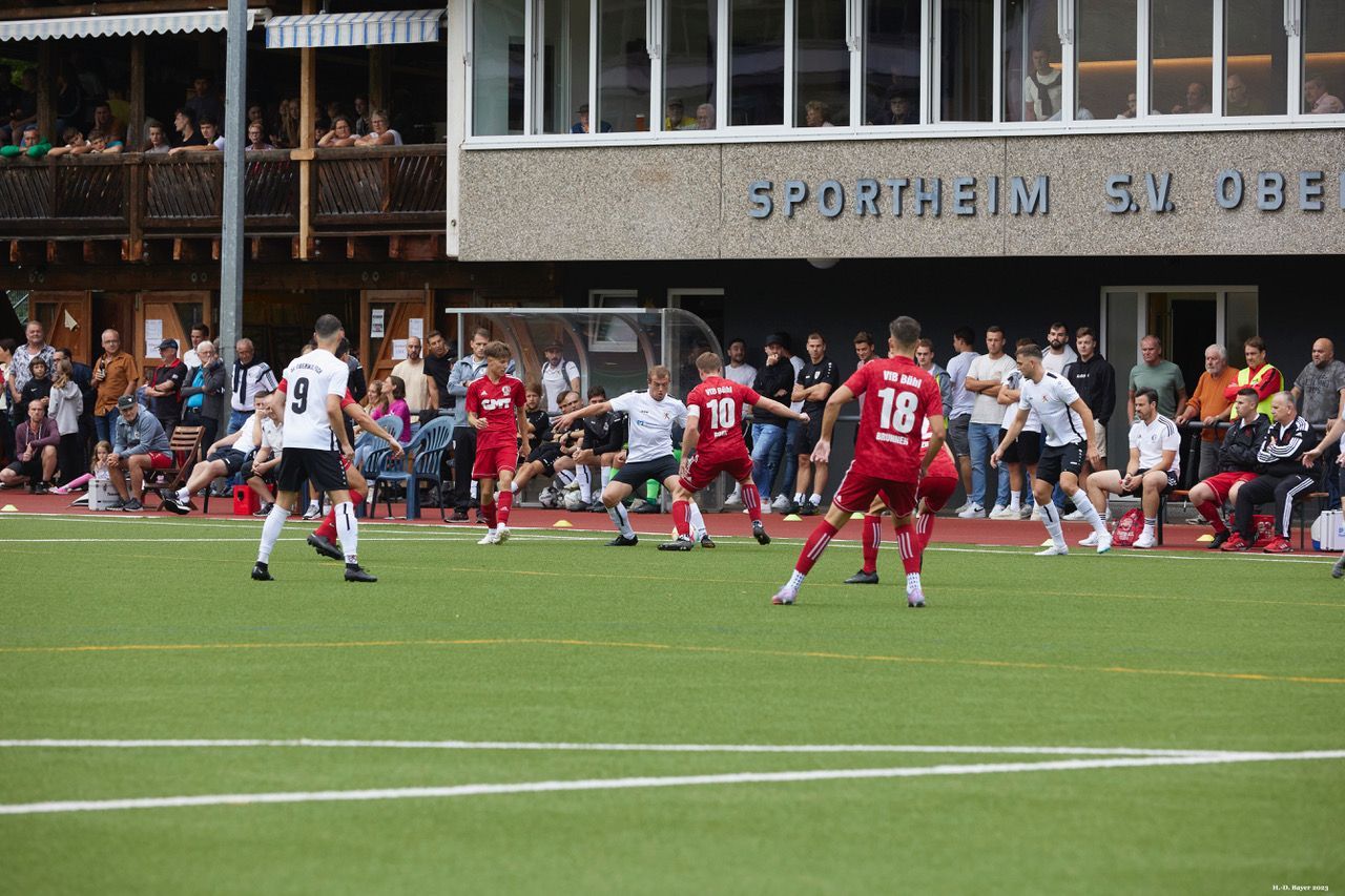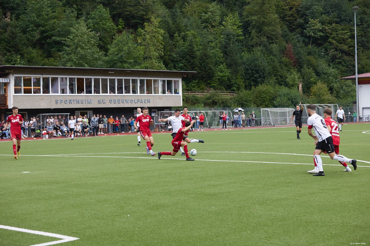 Die ersten beiden Halbchancen hatte der Gast durch Luca Doninger und Ali Gülel zu verzeichnen. Den Führungstreffer erzielte Bühl dann in der 25. Minute. Nach einem gut vorgetragenen Konterangriff konnte Oberwolfachs Schlussmann Oliver Mai zunächst mit dem Fuß klären, das Leder fiel jedoch genau Nico Bohn vor die Füße, der zum 0:1 ins leere Tor einschob. In der Folge stand der Vorjahresvize sicher in der Defensive, dem SVO fiel wenig ein. Erst kurz vor der Pause wurde das Offensivspiel der Hausherren zwingender. Felix Rauber und zweimal Lucas Schmid versuchten es jedoch erfolglos